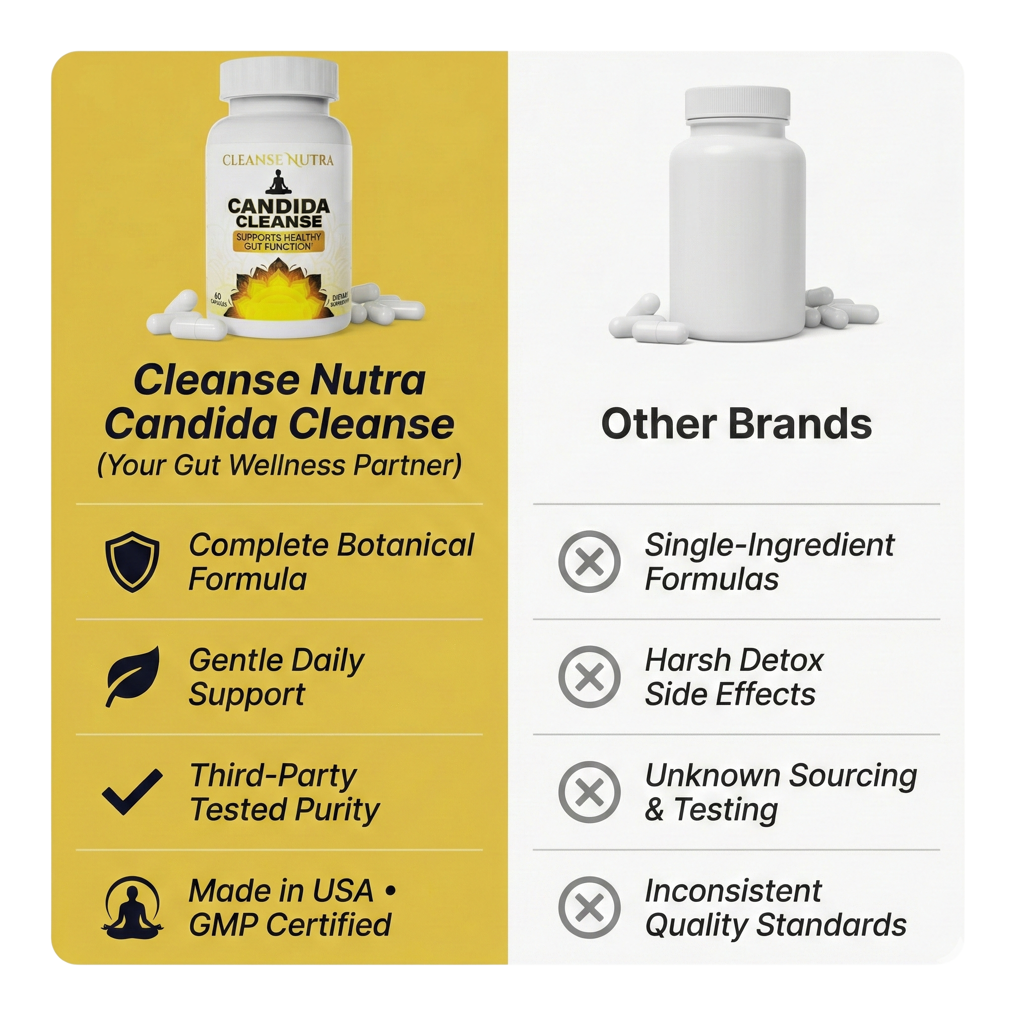 Cleanse Nutra está elaborado con ingredientes botánicos naturales y, por lo general, se tolera bien junto con otros suplementos. Sin embargo, si actualmente toma medicamentos recetados, en particular antifúngicos, anticoagulantes o inmunosupresores, le recomendamos consultar con su médico antes de comenzar a tomar cualquier suplemento nuevo para garantizar su compatibilidad con su régimen.